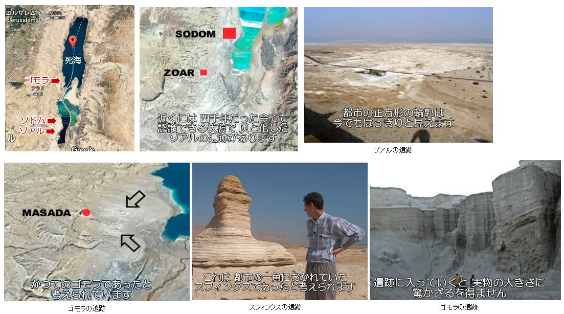 約3800年前のアブラハムの時代、旧約聖書の創世記によれば、イスラエルの死海の周辺の低地(ヨルダン渓谷)は、現在と違って 肥沃な土地で、ソドム、ゴモラと呼ばれる都市があり、そこにはハム系の人々が豊かに暮らしていました。これらの町々は大きく繁栄していましたが、同性愛の町であり、道徳的には退廃の極みに達していました。 そこで、ついに主は、それらの町々を裁くために下っていかれました。 主は二人の御使いを使わし、ロトとその家族を脱出させ、それから 天から火と硫黄を降り注がせ、それらの町々を焼き尽くしてしまいました。
