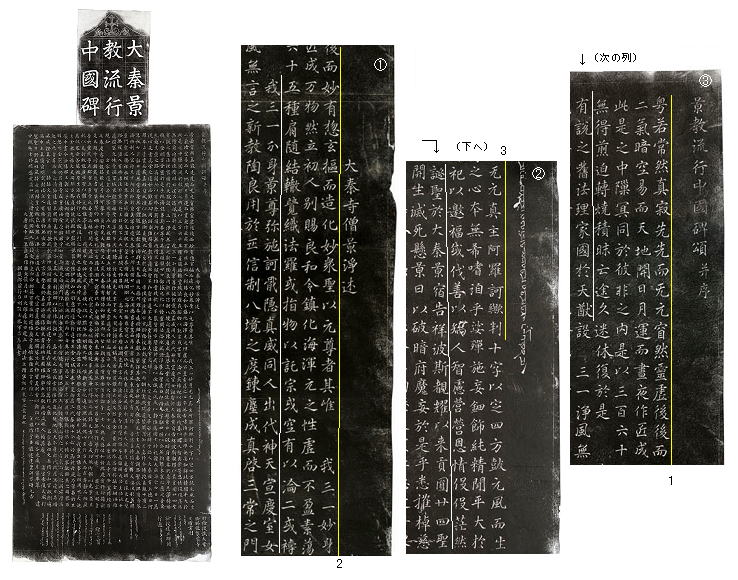 (↓ 黄色い傍線): 景教碑文の冒頭部分