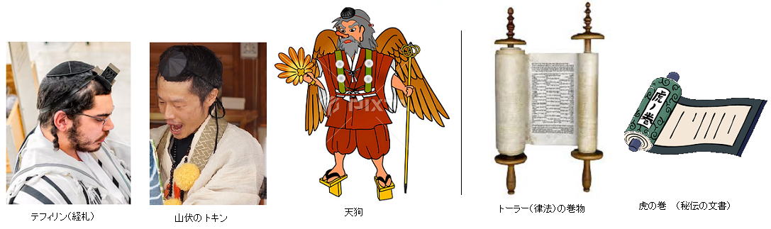 ● 天狗、虎の巻、 テフィリン(額に着ける聖句箱)、帽子の キッパ (→カッパ?)