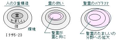 しかし、神のことばに従うとか、積極的に伝道、あかし、神の働きをするとか、カリスマ(聖霊の賜物)が現れるなどのためには、さらに、その人のたましいの分野(特に、意志の分野)が聖霊に満たされる必要がある。