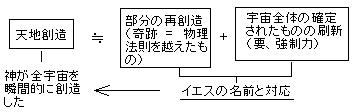 したがって、聖書にあるように、キリスト教の神が天地万物を6日間で創造したということは、同じ神が奇跡すなわち再創造を今も行う事から、きわめて妥当な事であると言えるのである。